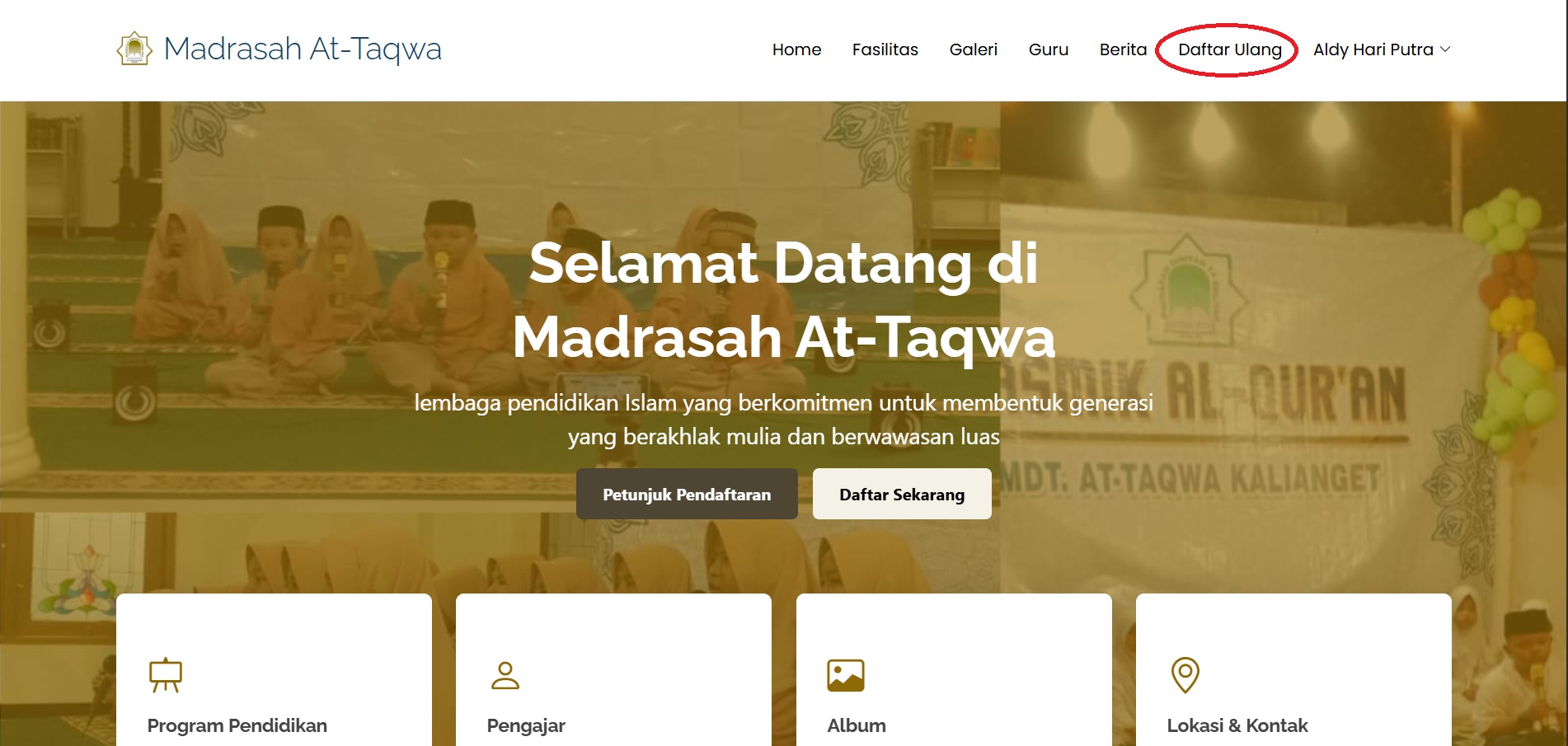 Klik "Daftar Ulang" Pada Navbar Website