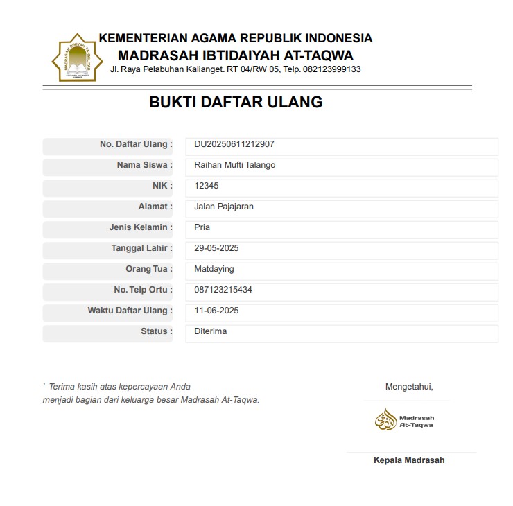 Isi form bukti daftar ulang
