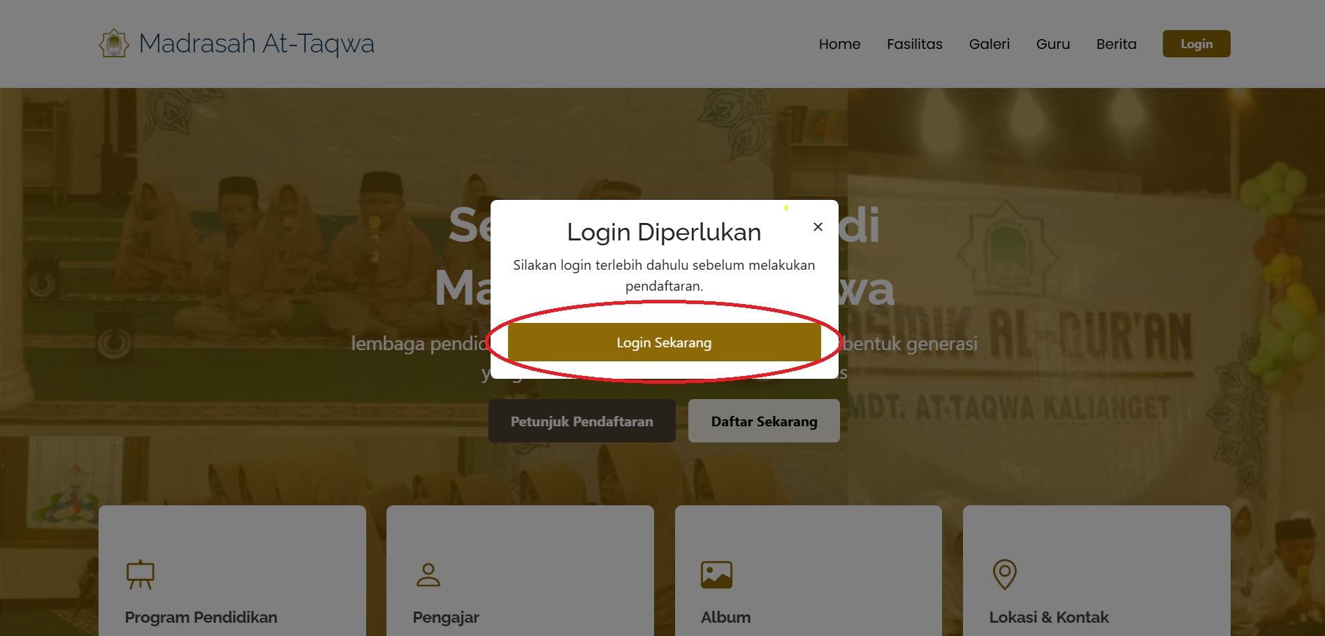 Klik "Login Sekarang" pada form tersebut