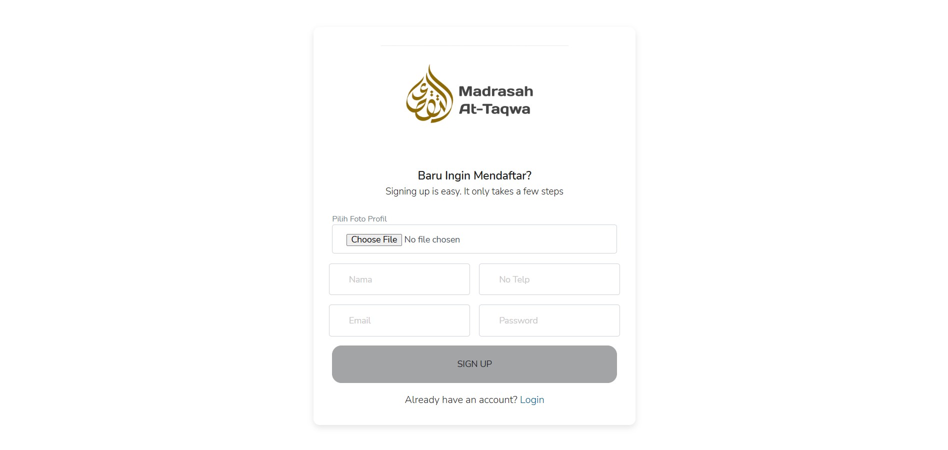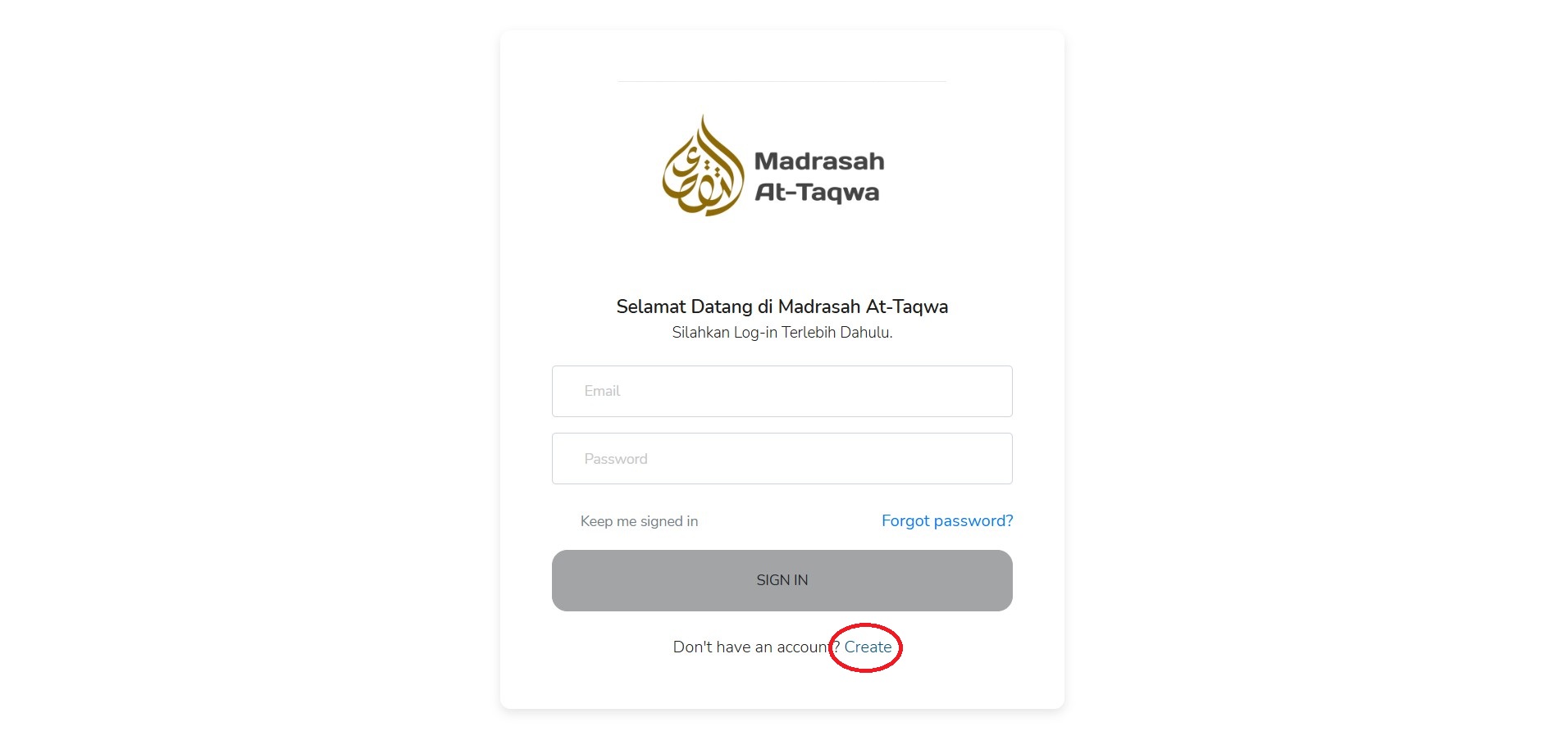 Masukkan akun apabila sudah punya akun, Jika belom klik "Create" Dibagian bawah form isi