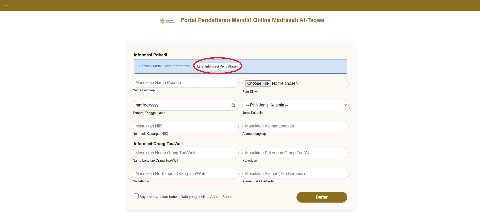 Isilah dengan benar Form, dan jika Selesai klik "Daftar" pada halaman form tersebut