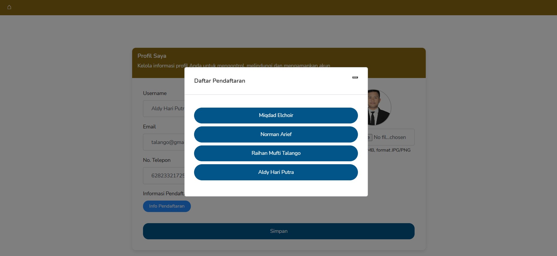 Pilih nama Jika anda Mendaftarkan lebih dari 1, kemudian isi form tersebut dan Klik "Daftar" Pada form tersebut